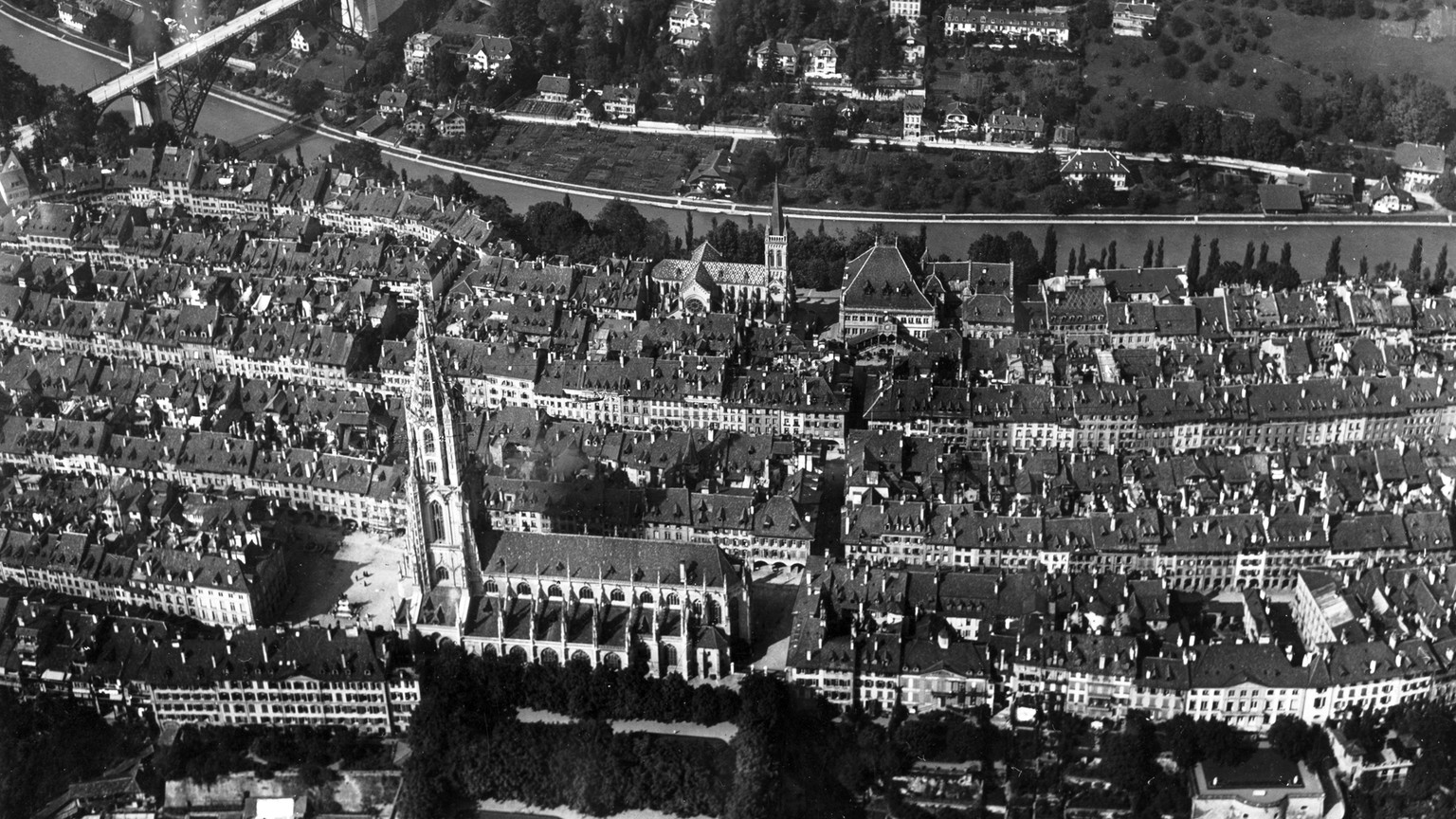Luftaufnahme der Stadt Bern, gemacht von Flugpionier Walter Mittelholzer, um 1920. Bild: Schweizerisches Nationalmuseum